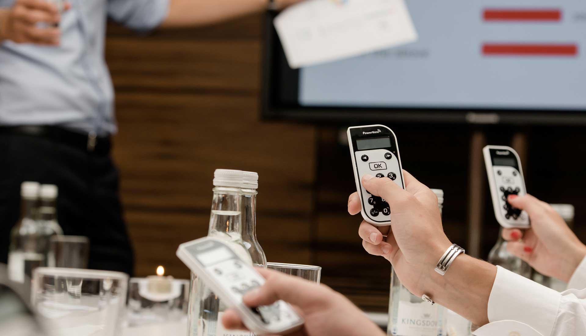 Para la medición de opinión, elección o participación en eventos presenciales, CYBERIA TECH le ofrece innovadores y prácticos mandos de votación de alta gama que permiten un mayor alcance. Este servicio lo puede utilizar en la Asamblea Presencial, Consejo, Juntas, actividades de capacitación, medición de clima organizacional o cualquier otro tipo de evento.